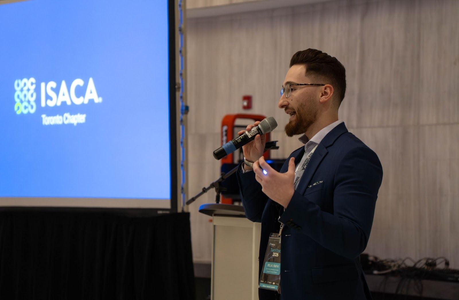 The event opened with remarks from the ISACA Toronto Chapter, delivered by Belal Raifai, Academic Relations Director and Senior Manager at PwC Canada. He spoke about how ISACA’s focus has evolved alongside the technology landscape, expanding beyond traditional IT audit into areas such as cloud computing, data analysis, AI, and other emerging fields.